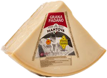 The milk, the skilfulness of the workers and a patient and well-managed ripening process are the staple qualities of Latteria Sociale Mantova cheeses. This cooperative is one of the only producers of Padano that has submitted the whole production procedure to the UNI EN ISO 9001:2000 quality certification. Made from unpasteurised cow's milk and generally aged for two years, Grana Padano develops a firm, thick, and deeply straw-coloured rind protecting the fragrant, dry, flaking interior. Grana, meaning grainy, reflects the fine granular texture with an intensely sweet flavour. As the cheese ages, the flavours become pronounced, savoury and complex and the texture becomes more crumbly. Although similar to Parmigiano Reggiano, Grana Padano is inexpensive because areas producing the cheese are bigger, it is less crumbly, milder and less complex. Made from unpasteurised cow's milk and generally aged for two years, Grana Padano develops a firm, thick, and deeply straw-coloured rind protecting the fragrant, dry, flaking interior.